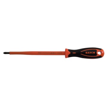 Geisoleerde Bahco schroevendraaier met VDE keurmerk van Bahco voor Phillipsschroeven. Voor het werken onder spanning staande installaties tot 1000V. Twee componenten handgreep met ophanggat en speciaal ontwerp zodat de schroevendraaier niet weg rolt. Gemakkelijke keuze voor de juiste schroevendraaier, vanwege het symbool aan het uiteinde van de handgreep. Verchroomd en geheel gehard. PH 1. Lengte 150 mm.