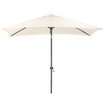 Balkonparasol ecru 150x250cm is een rechthoekige parasol speciaal ontworpen voor gebruik voor op het balkon. Met behulp van het draaimechanisme is de parasol eenvoudig te openen en te sluiten. De balkonparasol is gemaakt van een polyester doek en een aluminium frame. Hierdoor zal water het frame niet laten roesten. Omdat de parasol een kantelfunctie heeft en rechthoekig van vorm is, is de parasol altijd in te passen. Zo creëer je, zelfs op kleine balkons, altijd een schaduwplekje met uv beschermingsfactor 30. Dit is niet alleen fijn voor jezelf, maar ook voor bijvoorbeeld kinderen, huisdieren of eten en drinken dat de felste zon niet verdragen kan. Kortom, met de Balkonparasol Rechthoekig Ecru 150x250 cm zal je balkon nog meer een plek worden waar het fijn is om te verblijven. Deze balkonparasol is 250 centimeter hoog, 250 centimeter breed en 150 centimeter diep.