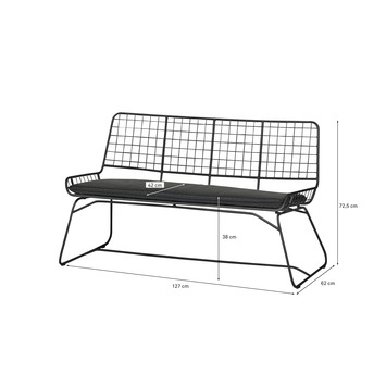 De tuinbank Dennis zwart is een mooie hippe bank gemaakt van staal met rugleuning. De stoel kenmerkt zich door zijn eigentijdse vormgeving. De bank is gemaakt van zwart gespoten staalgaas inclusief een zwart kussen. Dennis heeft een basic look en past bij iedere woonstijl binnen en buiten. De bank Dennis is geschikt voor 2 personen. Bank Dennis is ook verkrijgbaar in het wit, een eetkamerstoel, relaxstoel en tuinstoel variant.