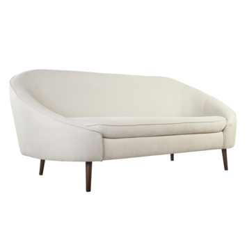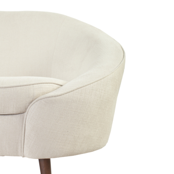 Deze elegante 2.5-zits bank Donna heeft een ronde vormgeving met aflopende armleuningen.