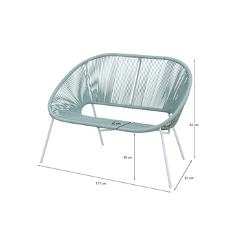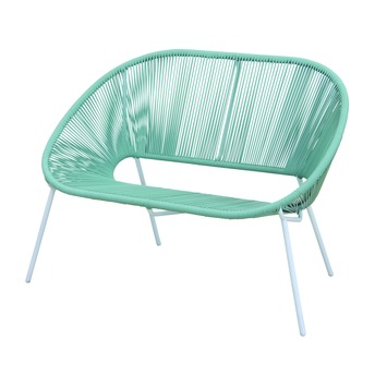 Bank Haïti mintgroen is een leuke hippe 2 zits bank. Het frame van de bank is gemaakt van staal en de zitting en de rug is van waslijndraad. De bank is makkelijk reinigbaar. De kleur van het draad is mintgroen. De bank zit comfortabel en door zijn compacte formaat is hij in veel tuinen te plaatsen. Het opvallende unieke design zorgt ervoor dat deze bank een echte eye-catcher is in je tuin. Deze witte bank is ook verkrijgbaar in de kleuren zwart en wit. Door deze opvallende bank in diverse kleuren te combineren met anderen tuinmeubelen en accessoires, maak jij je tuin klaar voor een kleurrijk en trendy spetterend tuinfeestje.