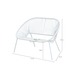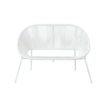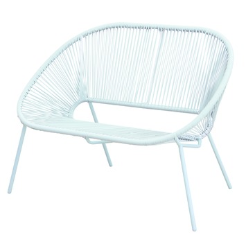 Bank Haïti wit is een leuke hippe 2 zits bank. Het frame van de bank is gemaakt van staal en de zitting en de rug is van waslijndraad. De bank is makkelijk reinigbaar. De kleur van het draad is wit. De bank zit comfortabel en door zijn compacte formaat is hij in veel tuinen te plaatsen. Het opvallende unieke design zorgt ervoor dat deze bank een echte eye-catcher is in je tuin. Deze witte bank is ook verkrijgbaar in de kleuren zwart en mintgroen. Door deze opvallende bank in diverse kleuren te combineren met anderen tuinmeubelen en accessoires, maak jij je tuin klaar voor een kleurrijk en trendy spetterend tuinfeestje.