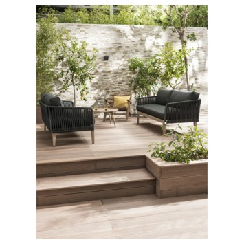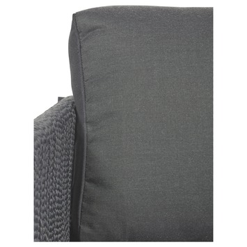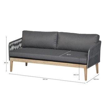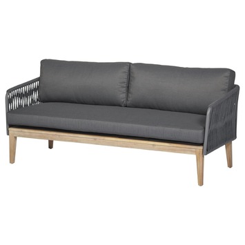 De loungebank Madrid is een luxe en comfortabele 3-zitter. Deze bank is een echte blikvanger voor je tuin of veranda. Door de combinatie van touw en hout heeft deze bank een rijke look en feel. Het onderstel is gemaakt van hout en de zitting en de leuningen van zijn van staal met kunstof draad. De bank is inclusief antraciet kussens.
