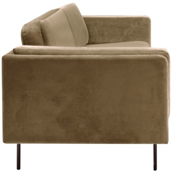 De 2,5-zits bank Marquise fluweel champagne is een eigentijdse, comfortabele bank met als stijl kenmerk de smalle kaders en de rechtopstaande armkussens. De Marquise staat op elegante, zwart metalen pootjes. De Marquise bank wordt geleverd in een luxueuze velours-stof in 3 elegante kleuren: warm groen, champagne en bruin. De Marquise bank is er in een 3-zits en een 2,5-zits uitvoering. Daarnaast is de Marquise bank ook beschikbaar als fauteuil.