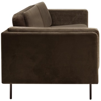 De 3-zits bank Marquise fluweel bruin is een eigentijdse, comfortabele bank met als stijl kenmerk de smalle kaders en de rechtopstaande armkussens. De Marquise staat op elegante, zwart metalen pootjes. De Marquise bank wordt geleverd in een luxueuze velours-stof in 3 elegante kleuren: warm groen, champagne en bruin. De Marquise bank is er in een 3-zits en een 2,5-zits uitvoering. Daarnaast is de Marquise bank ook beschikbaar als fauteuil.