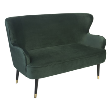 Deze fluweel donkergroene bank met hoge rugleuning, geeft je interieur een luxe uitstraling. De bank voelt heerlijk zacht aan en heeft ook nog eens een comfortabele zitting. De stof is van 100% polyester. Een aanwinst voor je interieur.
