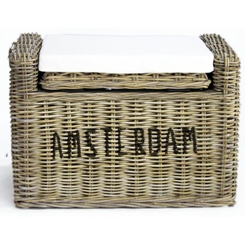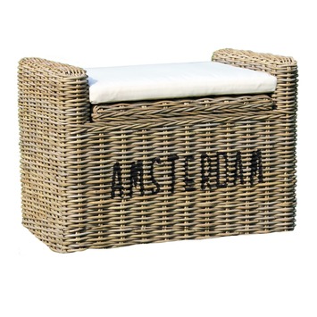 De bank Rotan Amsterdam 70 cm is een ideaal voor in de tuin. Het bankje is gemaakt van rotan en op de voorkant van het bankje staat in zwarte letters Amsterdam geschreven. Het bankje is voorzien van een wit kussentje, waardoor je comfortabel kunt zitten. In de Rotan-serie zijn ook andere tuinmeubelen verkrijgbaar die goed te combineren zijn. Bank Rotan Amsterdam 70 centimeter is 51 centimeter hoog, 70 centimeter breed en 42 centimeter diep.