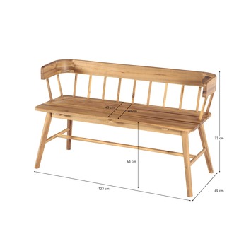 Bank Zia naturel is 73 centimeter hoog, 123 centimeter breed en 49 centimeter diep.