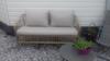Fijne bank en ook bijgeleverde kussens zijn mooi. Bankje is kunststof dus kun je prima buiten laten staan, hij blijft mooi.