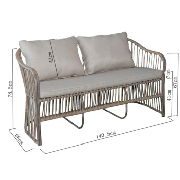 Maak je tuin compleet met deze tweezits loungebank. Het stalenframe is afgewerkt met polyester en wicker. Door de lekkere kussens zak je helemaal weg in de heerlijke avondzon na een lange dag werken. Zet het bankje in je tuin of balkon en geniet!