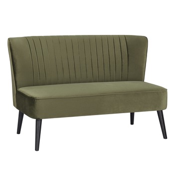 Bankje Liza is een bankje met fluweel look en heeft een comfortabele zit. Het bankje is gestoffeerd in de kleur warmgroen met een 100% polyester stof. Bij deze bank Liza is ook een bijpassende fauteuil verkrijgbaar. De bank Liza is verkrijgbaar in de kleuren warm groen, okergeel en antraciet.