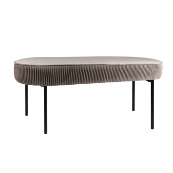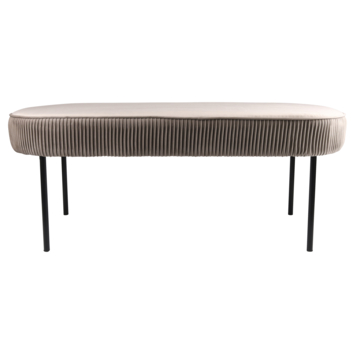 Dit heerlijk zachte bankje staat fantastisch in je hal of woonkamer. Het geplooide, zachte fluweel geeft een fijne uitstraling en nodigt je uit om te gaan zitten. Dit bankje is lichtgrijs, maar ook verkrijgbaar in de kleur roestbruin. De afmetingen zijn (HxBXD) 45x110x40 cm.
