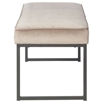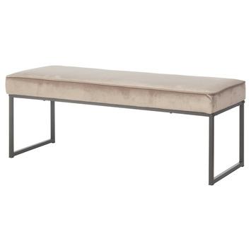 Bankje Pien fluweel is gestoffeerd in een beige fluweel polyester stoffering met zwart metaal onderstel. Het bankje kan gebruikt worden als eettafelbank of extra zitplaats. De bank heeft een luxe uitstraling en staat leuk in meerdere ruimtes in het huis. De zitbank is geschikt voor 2 personen. Bankje Pien is ook verkrijgbaar in een poef.