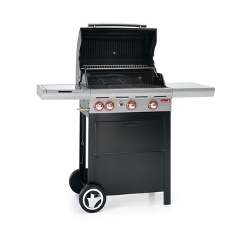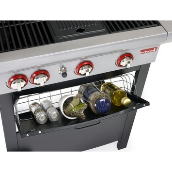 Met de Barbecook buitenkeuken Barbecook Spring 350 zwart hoef je op warme dagen nooit meer in de hete keuken te staan om het eten te bereiden. Toch hoef je de comfort van een keuken niet meer in te leveren. Met de Barbecook Spring kun je heerlijk in de buitenlucht koken. Dus als jouw vrienden of familie op een zomerse avond in de tuin zitten, kun jij hier lekker bij zitten. Het deksel en de kuip zijn zwart geëmailleerd en daardoor eenvoudig schoon te houden. Bovendien is deze buitenkeuken voorzien van een chromen warmhoudrooster. Doordat deze keuken voor zien is van drie RSV-branders en een zijbrander kun je vlees, groenten en vis grillen op de gietijzeren rooster en contactplaat. Het aansteken van deze buitenkeuken is een kleine moeite, doordat deze beschikt over een elektronische ontsteking. De Barbecook Spring 350 zwart is 115 centimeter hoog, 133 centimeter breed en 57 centimeter diep. Daarnaast beschikt de barbecue over drie roosters, elk 21x43 cm.