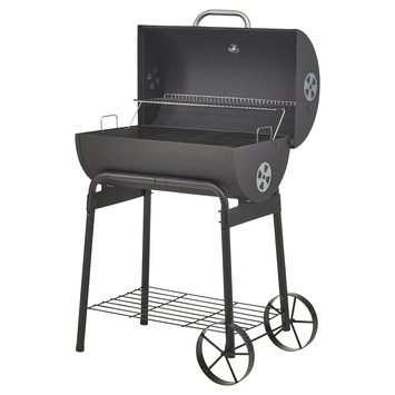 De barbecue Detroit zwart 107x71x126 cm is een uitgebreide houtskoolbarbecue met drie losse grillen. Op een kookhoogte van 84 centimeter en drie grillen van 44 bij 22 centimeter heb je voldoende ruimte om een fijne barbecuemaaltijd te bereiden. De barbecue is gemaakt van staal en is uitgevoerd in het zwart. De barbecue detroit is voorzien van stalen wielen. De barbecue Detroit zwart is 107 centimeter hoog, 126 centimeter breed, 71 centimeter diep.