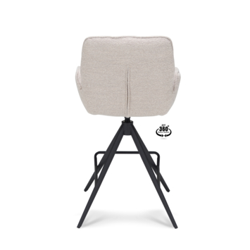 De barkruk Iris Alpine natural beige bouclé stof met armleuning biedt een perfecte balans tussen comfort, stijl en functionaliteit. Dankzij de zachte bouclé stof in een warme natural beige tint voegt deze barkruk direct sfeer toe aan je keuken of bar. De rijke textuur van de bekleding en de afgeronde armleuningen zorgen voor een comfortabele en luxe zitervaring.