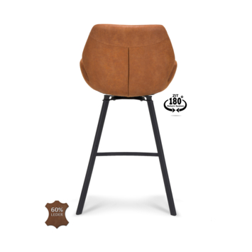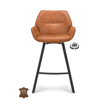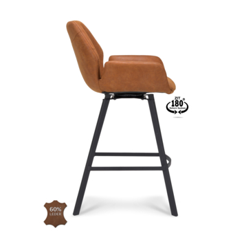 De barkruk Weston Bull camel bruin leer met armleuning is een stoere en comfortabele toevoeging aan jouw keukenbar of bartafel. De zitting is bekleed met robuust microleder, uitgevoerd in een warme camel bruine tint. Dit materiaal, deels gemaakt van echt leer, combineert de luxe uitstraling van leder met de praktische voordelen van microvezel: sterk, onderhoudsvriendelijk en geschikt voor intensief dagelijks gebruik.