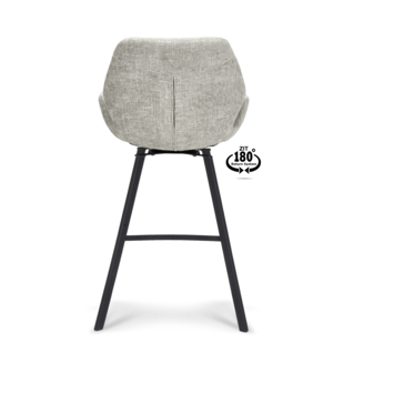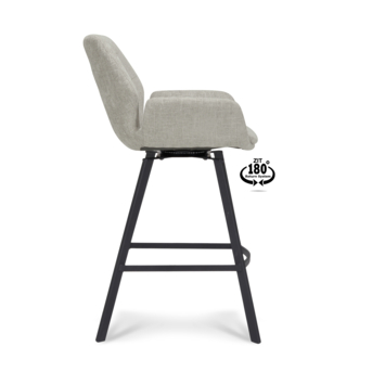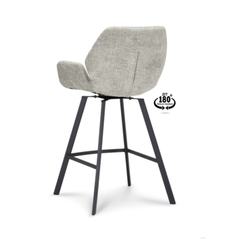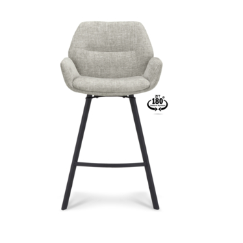 De barkruk Weston Miami taupe stof met armleuning is een moderne draaikruk met een stoere uitstraling en verrassend veel comfort. De zitting is bekleed met de zachte, eigentijdse stof in een warme taupe kleur. Deze stof voelt prettig aan en geeft je interieur een rustige, stijlvolle basis. De zwarte metalen poten zorgen voor een krachtig contrast en maken de barkruk visueel slank én stevig.