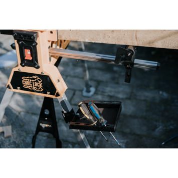 De Croc Lock beschikt over zogenaamde force feed opdat de klemkracht op maat gedoseerd kan worden. Het voetpedaal zorgt ervoor dat uw beide handen vrij zijn bij het klemmen van een werkstuk. De handige lock-schakelaar zorgt voor een snelle (ont)sluiting van geklemd materiaal. De opbouw is razendsnel en gemakkelijk, evenals het inklappen voor opslag of transport (extra transport handgreep aanwezig).
