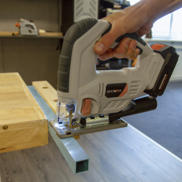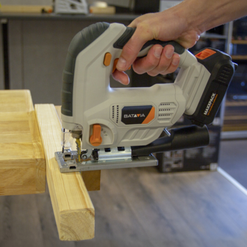 De 18V accu decoupeerzaag van Batavia werkt met het Maxxpack accuplatform. Zo heb je maar één accu nodig voor al je Batavia Maxxpack gereedschap.