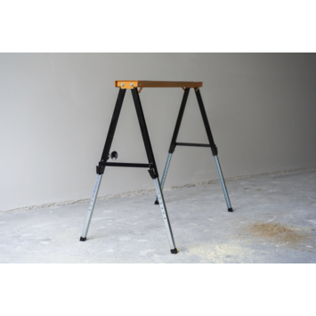 De Batavia verstelbare werkbok is een handige inklapbare schraag met afzonderlijk in hoogte verstelbare poten om oneffenheden op de ondergrond op te vangen, hoogteverschillen te overbruggen of juist te creëeren. De bok is per poot instelbaar.