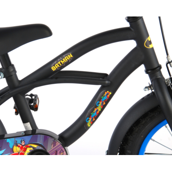 Speciaal voor alle fans van deze superheld heeft Volare een fiets ontworpen in de stijl van Batman. De fiets heeft een stoer zwart frame met Batmanstickers. De kettingkast is volledig gesloten en heeft bovendien ook een stoere print. Om snel te kunnen leren fietsen heeft de fiets zijwieltjes. Verder heeft de fiets een fietsbel en zowel een hand- als een terugtraprem.