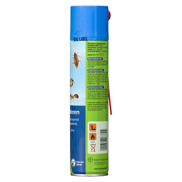 De Bayer mieren en kruipend ongediertespray 400 ml is geschikt voor het bespuiting van kieren, naden en andere plaatsen waar insecten zich schuilhouden. Na toepassing is de werking nog vier tot zes weken actief. Het middel is daarom erg effectief om mieren en andere hardnekkige insecten, zoals kakkerlakken en zilvervisjes te bestrijden. Voor een optimale bestrijding gebruik je de spray in de maanden juni tot en met augustus. Breng een hoeveelheid aan totdat de plaats zichtbaar vochtig is. Behandel alle schuilplaatsen achter en onder kasten, koelkasten, radiatoren en apparatuur. Behandel met deze spray nooit grote oppervlakken zoals wanden of vloeren.