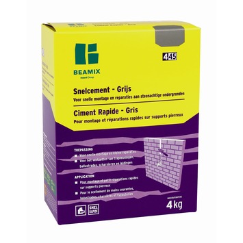 Beamix snelcement 445, voor snelle montage en reparatie. Beamix snelcement 445 is toepasbaar voor het vastzetten van trapleuningen, balustrades en leidingen en snelle reparatie van steenachtige ondergronden. Binnen 5 minuten is uw klus klaar.