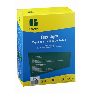Beamix tegellijm tegel op stuc en cellenbeton is een speciale tegellijm voor over gispgebonden gestucte ondergronden en cellenbeton te lijmen. Kwaliteit C2TE.