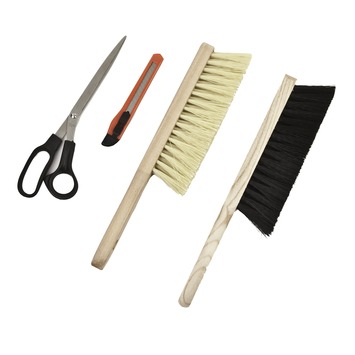 De Behangset 4-delig is een basisset om behang mee aan te brengen. De set bestaat uit een insmeer- en uitsmeerborstel, afbreekmesje en schaar.