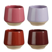 Voeg een beetje warmte toe aan je serviescollectie met deze prachtige beker van steengoed. Verkrijgbaar in de kleuren donkerpaars, donkerroze, donkerbruin en donkergeel. Het design is uniek, want die loopt van een smalle voet uit tot een bredere vorm - prachtig! Met een hoogte van 7 cm en een diameter van 7 cm is hij perfect voor je favoriete drankjes.