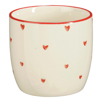 - Charmante beker van steengoed versierd met donkerrode hartjes