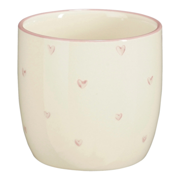 - Charmante beker van steengoed versierd met lila hartjes