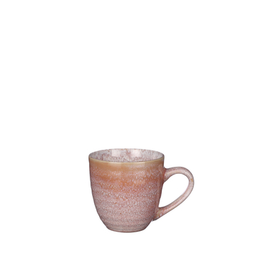 Rustiek en robuust; zo moet het servies omschreven worden. Geen wit porselein met saaie volmaakte lijnen, maar handgemaakte producten in neutrale tinten. Elk met een eigen, authentieke look die past bij puur genieten. Dat geldt ook voor deze beker met oor. Ideaal voor een kopje koffie. De beker is gemaakt van keramiek en heeft een roze kleur. Geen zorgen, de beker kan gewoon in de magnetron en vaatwaser worden gezet. Combineer de beker met andere artikelen uit de serie en maak het servies compleet.