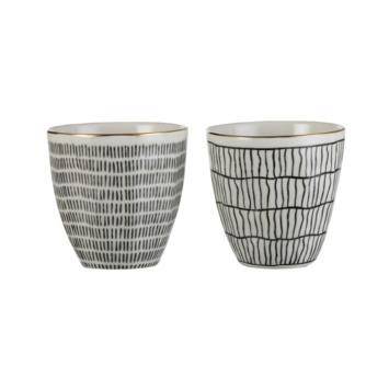 Het is altijd tijd voor koffie, of thee. De keuze maak je zelf. Maar gezellig ziet het er wel uit met deze zwart witte bekers.
