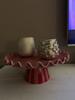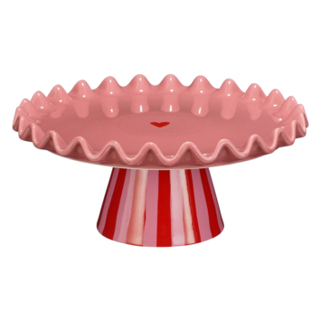 Met dit taartplateau breng je kleur en vrolijkheid naar je tafel! De taartstandaard is gemaakt van keramiek, heeft een opvallende gerafelde rand en is uitgevoerd in het roze met rood. Door de afmetingen van H12,5 x Ø30 cm is dit taart plateau perfect om taart, maar ook pudding of andere desserts op te serveren. Dankzij de opstaande rand blijft alles netjes op zijn plek. Of je nu een ontbijt, lunch, diner of gewoon iets lekkers presenteert, dit taartplateau met voet biedt eindeloze mogelijkheden.