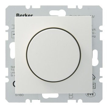 De Berker B.1-b.3-b.7 dimmer spoelentrafo 20-500w wit is een stijlvolle inbouw dimmer voor in het huis. Het systeem beschikt over een wisselschakeling, zodat je de verlichting kan instellen vanaf twee verschillende plaatsen. Met een wattage van 20 W tot 500 W heeft de dimmer een groot bereik. De Berker B.1-b.3-b.7 dimmer spoelentrafo 20-500w wit is ontworpen met een spoelen trafo. Het design van wit thermoplast heeft bovendien een strakke uitstraling. Oftewel, de Berker B.1-b.3-b.7 dimmer spoelentrafo 20-500w wit is een functionele dimmer met een strak design.