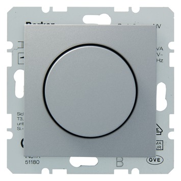 Berker B.1-B.3-B.7 Spoelentrafo Dimmer 20-500W Aluminium is een functionele inbouwdimmer voor in huis. Het systeem beschikt over een wisselschakeling, zodat je de verlichting vanaf twee verschillende plaatsen kunt instellen. Je kunt de dimmer gebruiken voor lampen met een minimaal Wage van 20W tot maximaal 500W