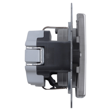 Met de Berker K5 Enkel Geaard Stopcontact RVS kun je elektrische apparaten voorzien van stroom. De aarde zorgt ervoor dat, in geval van kapotte- of losgeschoten bedrading in een apparaat (bv. wasmachine of computer), de metalen delen niet onder stroom komen te staan, de stroom wordt dan via een extra aardedraad in de aarde geleid.