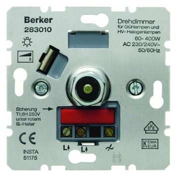 De Berker S.1 Inbouw Dimmer 230V Gloei/Halogeen Druk 60-400W is een inbouwdimmer voor in je huis. De dimmer heeft een drukknop en beschikt over een wisselschakeling. Daarmee kun je de verlichting vanaf twee verschillende plaatsen aan- en uitschakelen. Je kunt met deze dimmer lampen met een Wage van 60 tot 400W in- en uitschakelen. De dimmer heeft dus een groot bereik. Centraalplaat voor dit basiselement is los leverbaar.