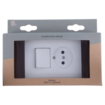 De Berker S.1 Stopcontact met Wisselschakelaar Wit combineert een wandcontactdoos en wisselschakelaar in één inbouwdoos. Een afdekraam heb je hierbij niet nodig.