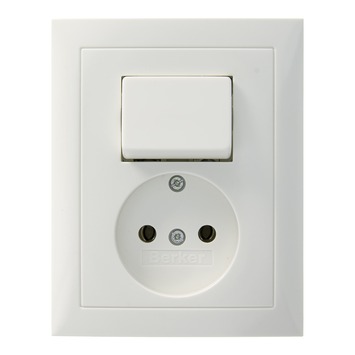 De Berker S.1 Stopcontact met Wisselschakelaar Wit combineert een wandcontactdoos en wisselschakelaar in één inbouwdoos. Een afdekraam heb je hierbij niet nodig.