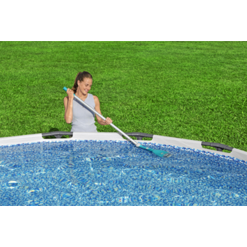 Wil je je zwembad in no-time schoon hebben? De Flowclear™ AquaTech™ zwembadstofzuiger maakt het makkelijk. Geen kabels, geen voorbereidingen: je zet hem aan en gaat aan de slag. Bladeren, zand en ander vuil verdwijnen snel in het transparante reservoir van 0,9 liter. Zo blijft jouw zwembad helder en fris. De 3-voudig verstelbare telescopische stang reikt tot elk hoekje, zelfs bij grotere baden tot 305 cm. Ideaal voor zowel whirlpools als opbouw- en inbouwzwembaden. Dankzij het lichte gewicht en de comfortabele grip maak je het schoonmaken snel en eenvoudig. Een zwembad schoonhouden was nog nooit zo makkelijk en snel.