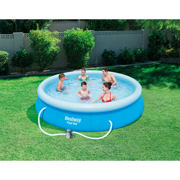 Dit zwembad doet zijn naam eer aan. Binnen no-time heb je dit zwembad opgeblazen en door zijn afmeting kan je er met het hele gezin plezier van hebben. Niets hoeft een moment plezier in dit zwembad in de weg te staan.