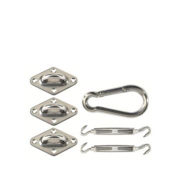 Wil je lang genieten van een schaduwdoek? Dan is het erg belangrijk om deze goed te bevestigen. Met dit Livin' Outdoor Bevestigingsmateriaal voor Driehoek Schaduwdoek RVS kan een driehoek schaduwdoek eenvoudig bevestigd worden aan een muur of paal. De bevestigingsset bestaat uit één karabijnhaak, twee spanners en drie platen met oog.