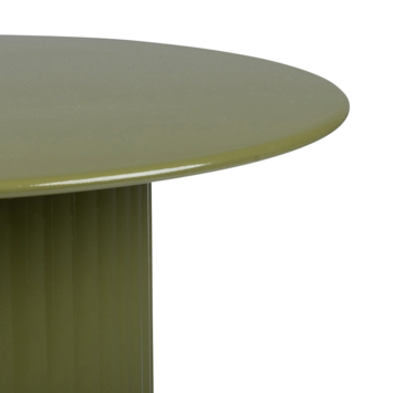 De bijzettafel Bonda in groen metaal is een frisse toevoeging aan je interieur. Met zijn ronde vorm en compacte formaat past hij moeiteloos naast de bank, bij een fauteuil of in een gezellig hoekje van de kamer. De warme groentint zorgt voor een speels accent en laat zich eenvoudig combineren met andere kleuren en materialen in huis.