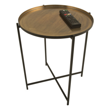 Deze stoere bijzettafel past in elk industrieel interieur. De tafel heeft een messing afwerkig met vierkant tafelpoten.