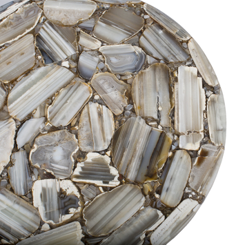De prachtige bijzettafel Bracari is afgewerkt met een agaat tafelblad en een zwart metalen voet. Een unieke tafel die voor elk interieur een mooie aanvulling is. Ook leuk als losse tafel met een vaas bloemen.