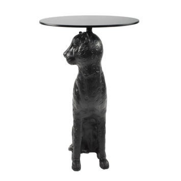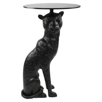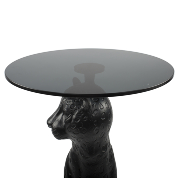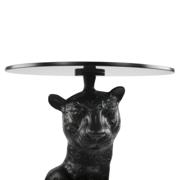 Deze luipaard bijzettafel valt echt op in je interieur. De bijzettafel is voorzien van een 8mm dik glazen tafelblad. Afmeting (øxh) 40x67 cm.