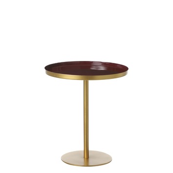 Deze prachtige Julie bijzettafel is een echte eyecatcher in het interieur! De bordeaux goude tafel is gemaakt van metaal en verder netjes afgewerkt met lak. Ook de poten zijn gemaakt van metaal. De tafel is rond en is handig voor als je bijvoorbeeld een glas, een boek of andere kleine spullen op wilt zetten. Je kunt de bijzettafel nog aantrekkelijker maken door er decorstuk op te zetten. Deze moderne tafel is 40 centimeter hoog, 43 centimeter lang en 43 centimeter breed. Kortom, de Julie bijzettafel is een mooie tafel en ideaal voor in het interieur.